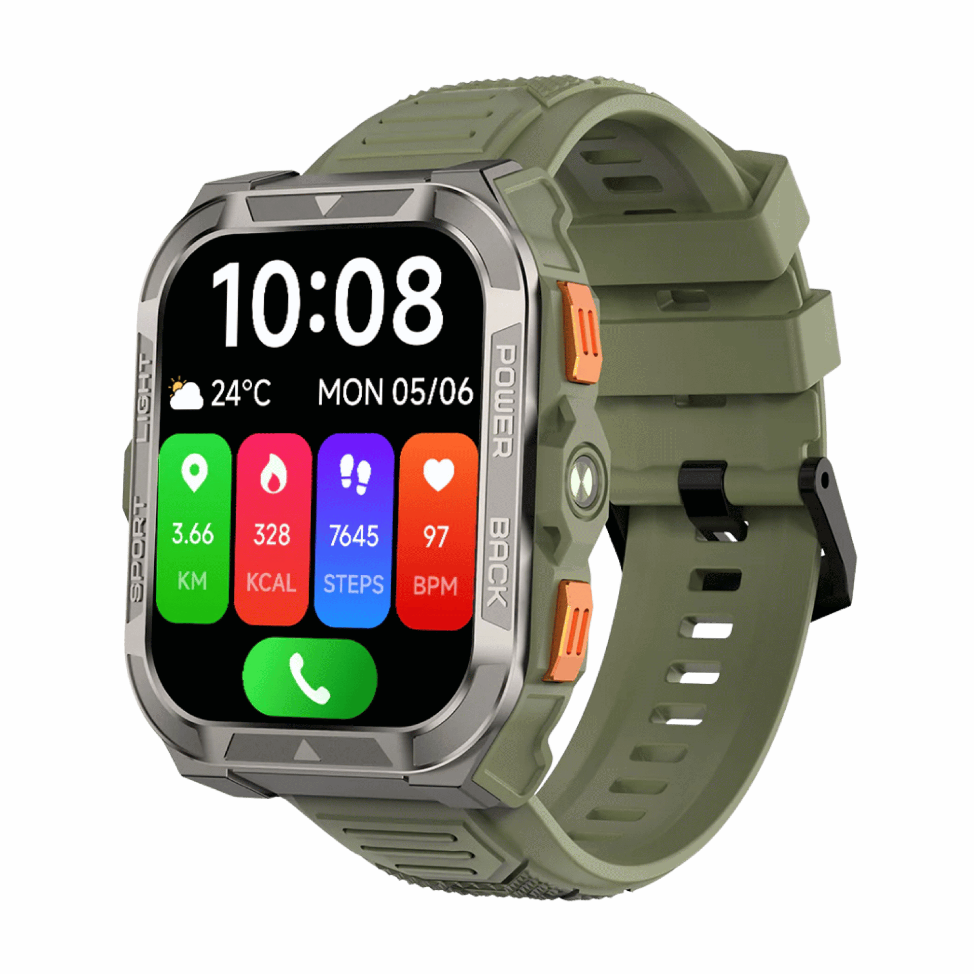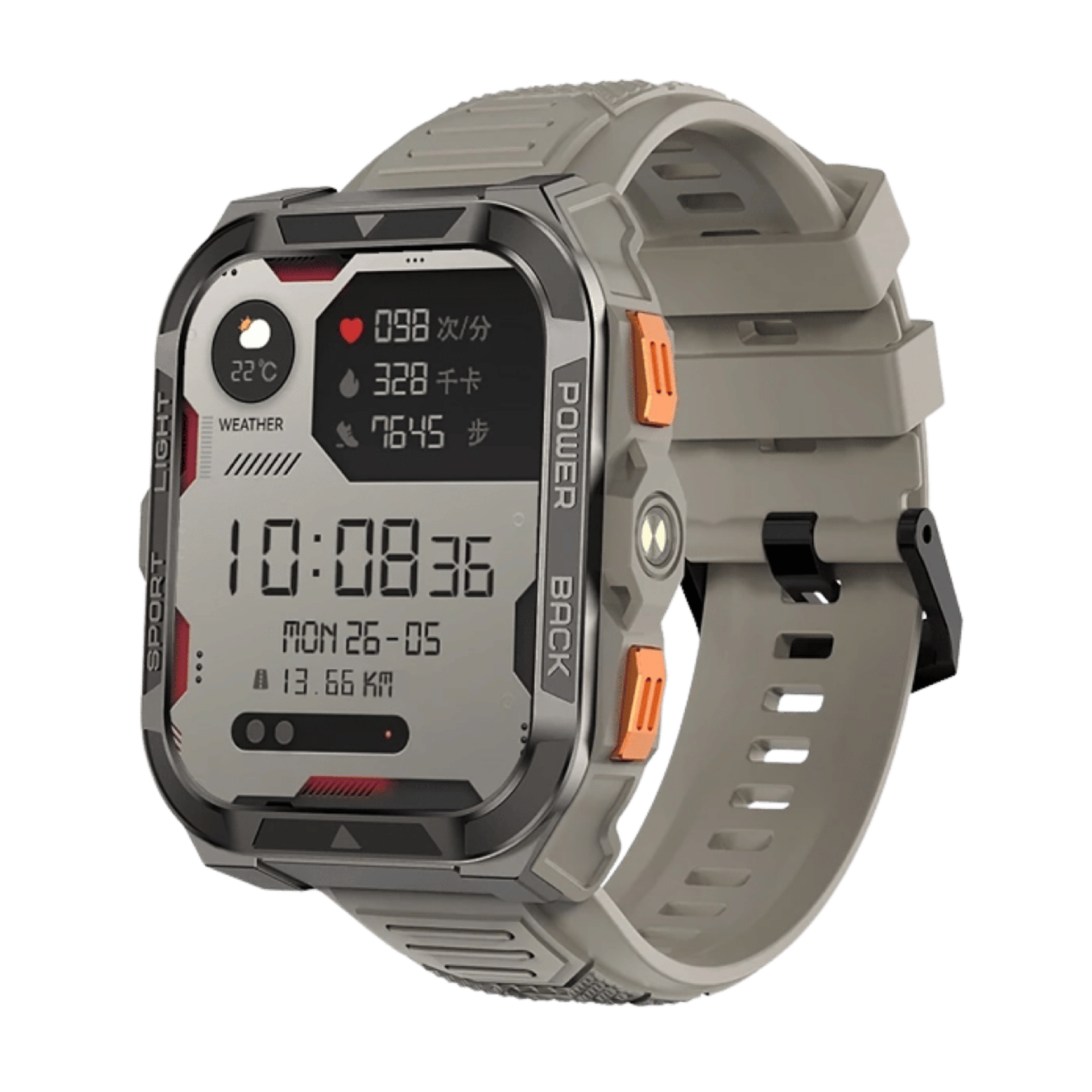 Pantalla grande de 1.91” con diseño militar y duradero.